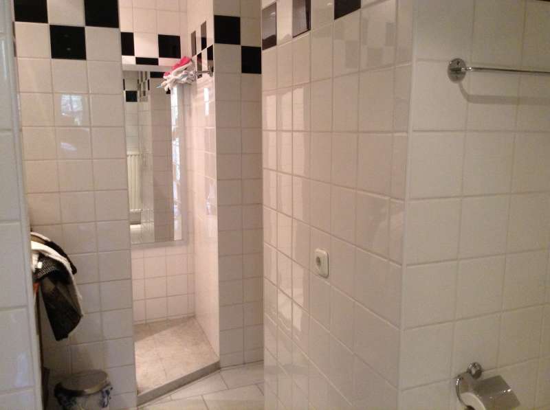 Ingebouwde kasten van aangrenzende slaapkamer verwijderen zodatbadkamer rechthoekig wordt. Houten vloer weghalen en metalen zwaluwstaartvloer aanleggen. Betegelen. Hangend toilet, badkamermeubel en inloopdouche plaatsen. Nieuw gipsplafond. Inbouwspots. Eventueel vloerverwarming.